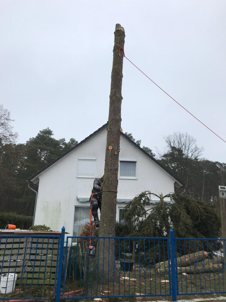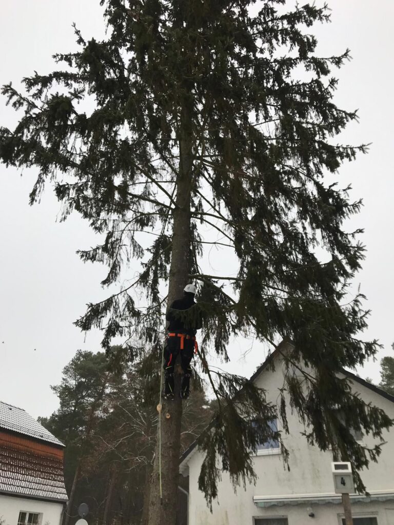 Sichere und präzise Entfernung eines großen Baumes in direkter Nähe zu Gebäuden und Stromleitungen – ganz ohne Einsatz von schweren Maschinen. Unsere erfahrenen Kletterer haben den Baum Stück für Stück abgetragen, um umliegende Flächen zu schützen und Schäden zu vermeiden. Das Holz wurde im Anschluss fachgerecht zerkleinert und entsorgt.