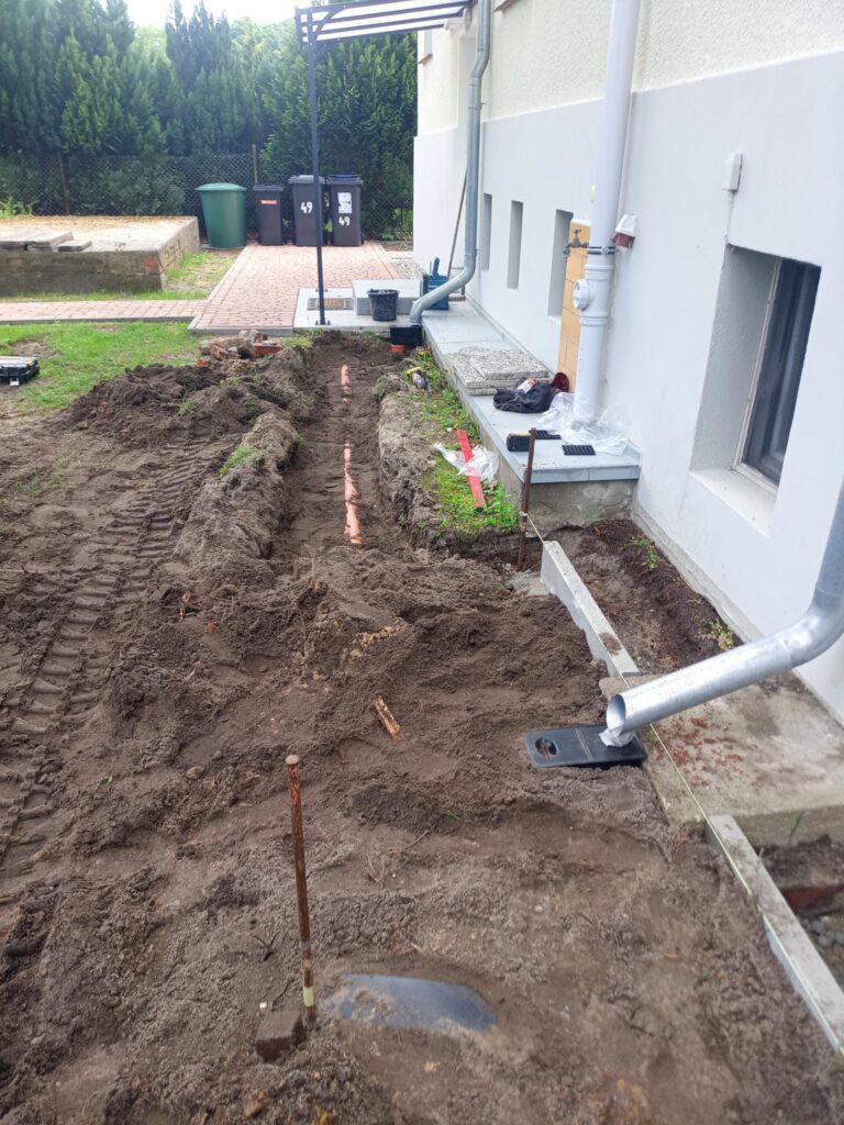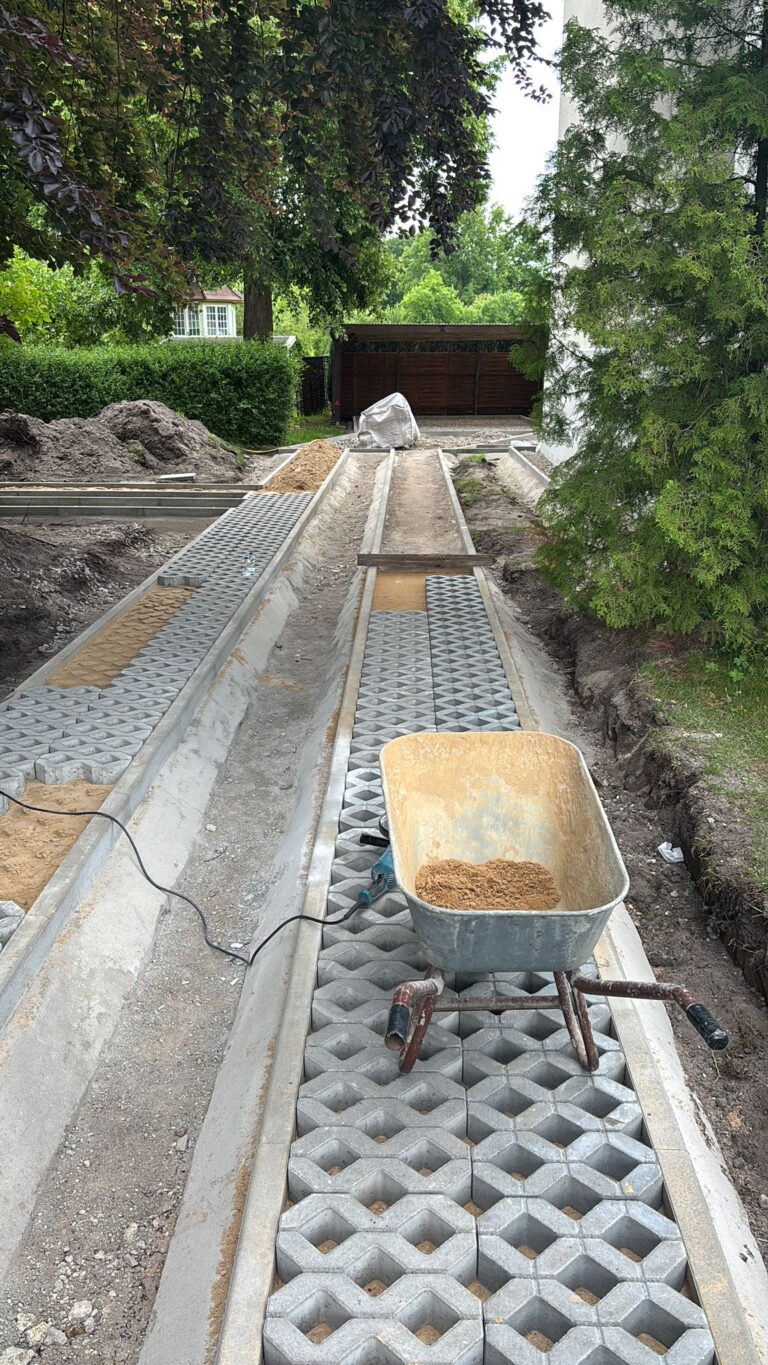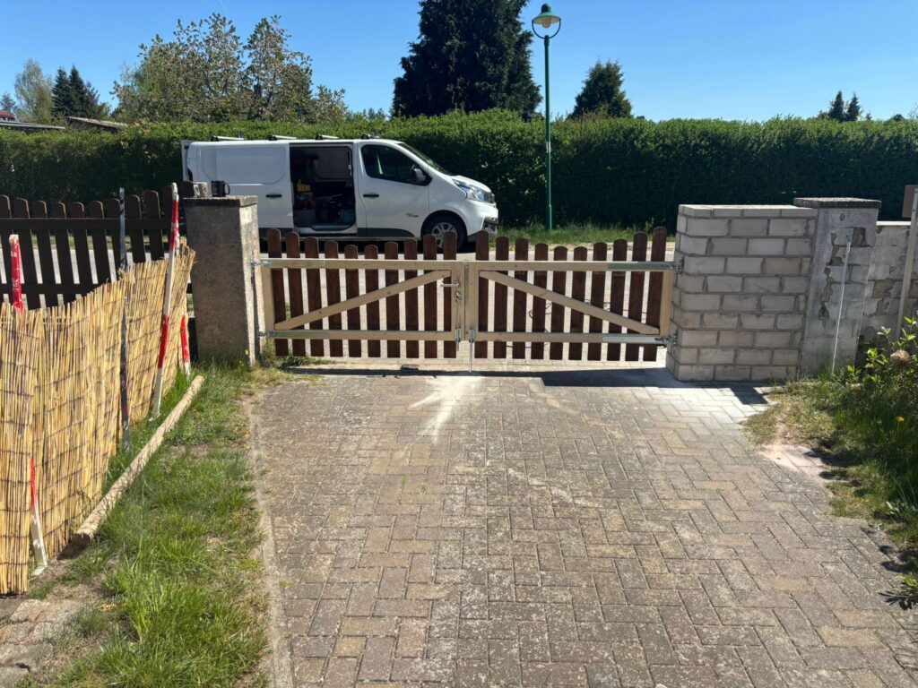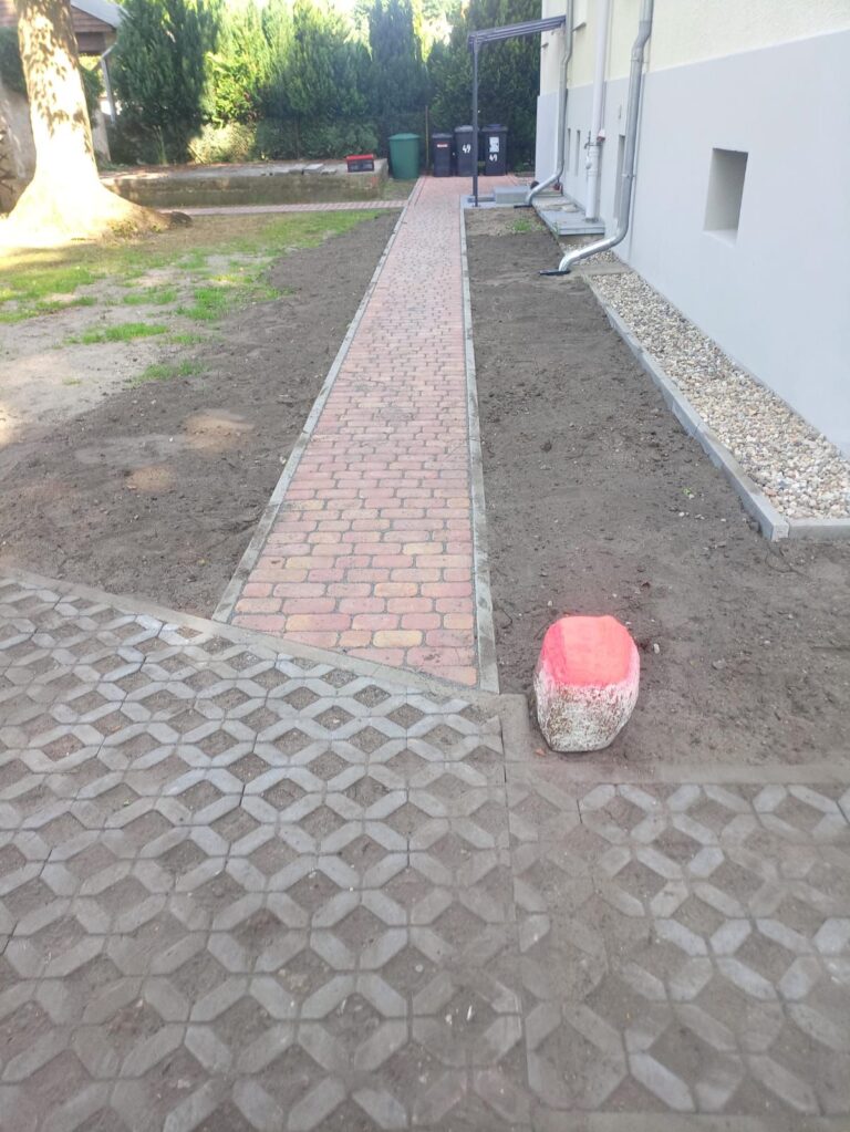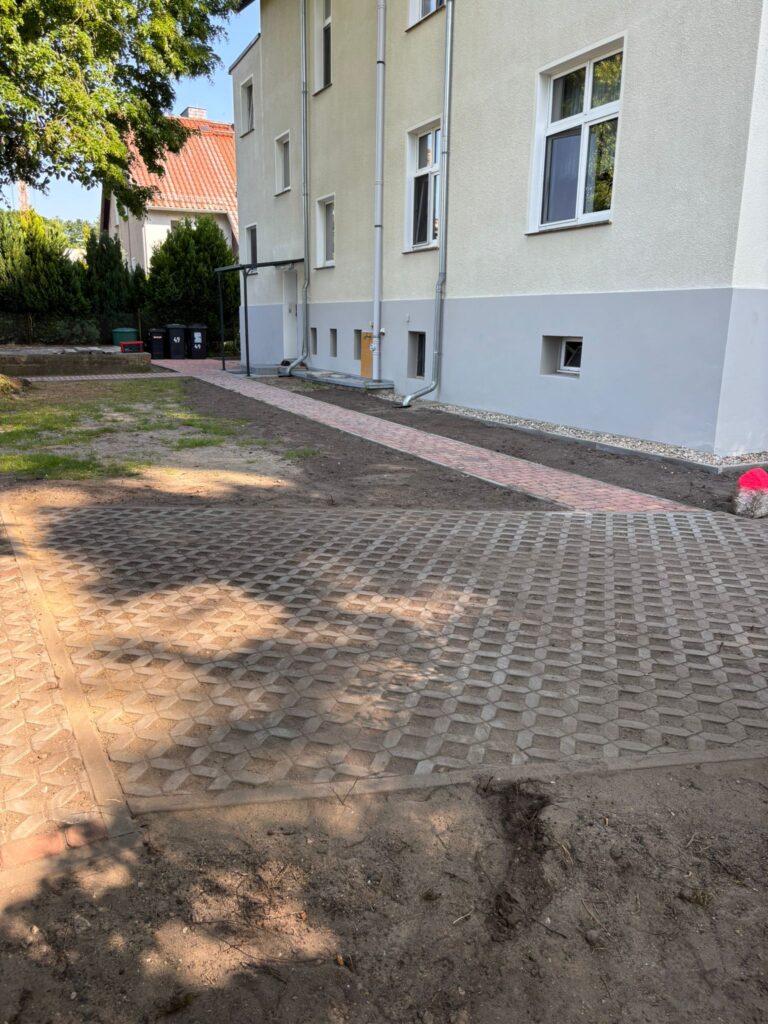 Anlage eines neuen Gehwegs, der sowohl funktional als auch optisch ansprechend ist. Verlegt wurden hochwertige Pflastersteine in einem harmonischen Muster, ergänzt durch saubere Randabschlüsse und eine fachgerechte Untergrundvorbereitung für maximale Langlebigkeit.
